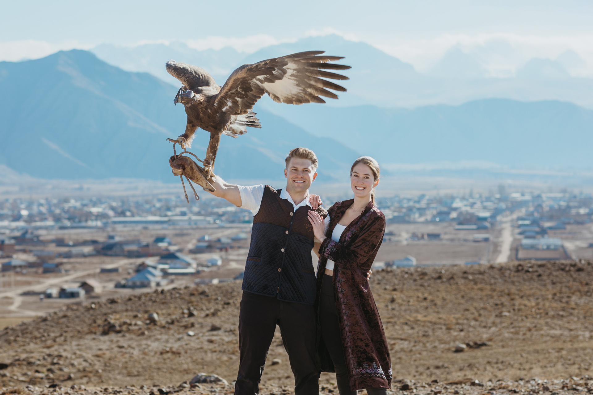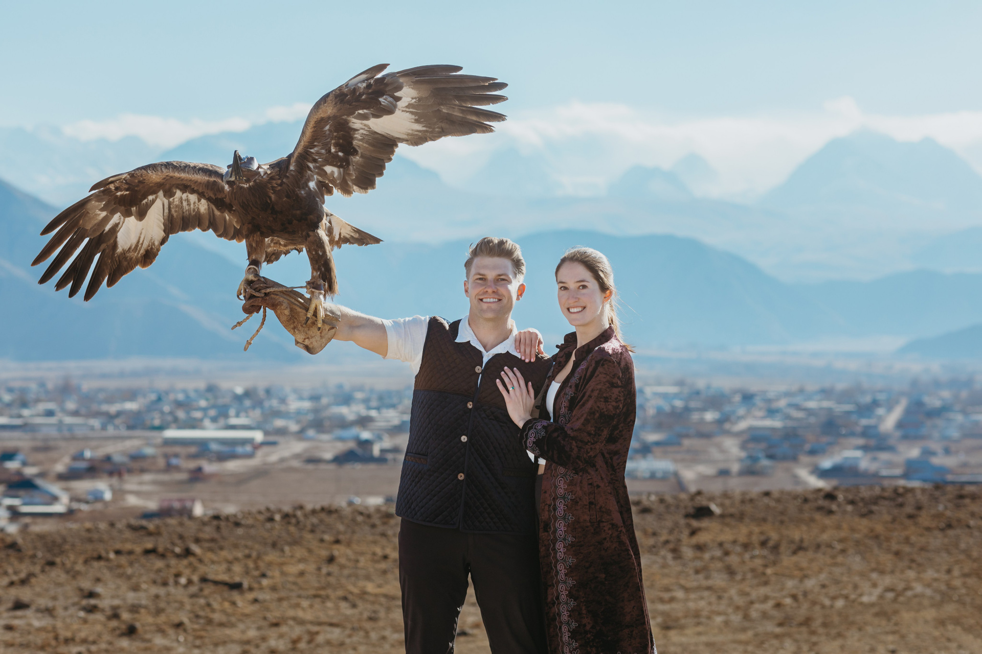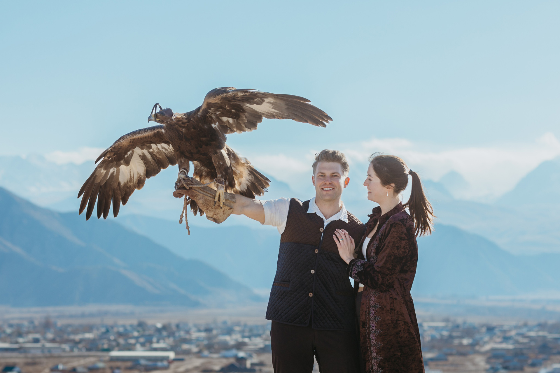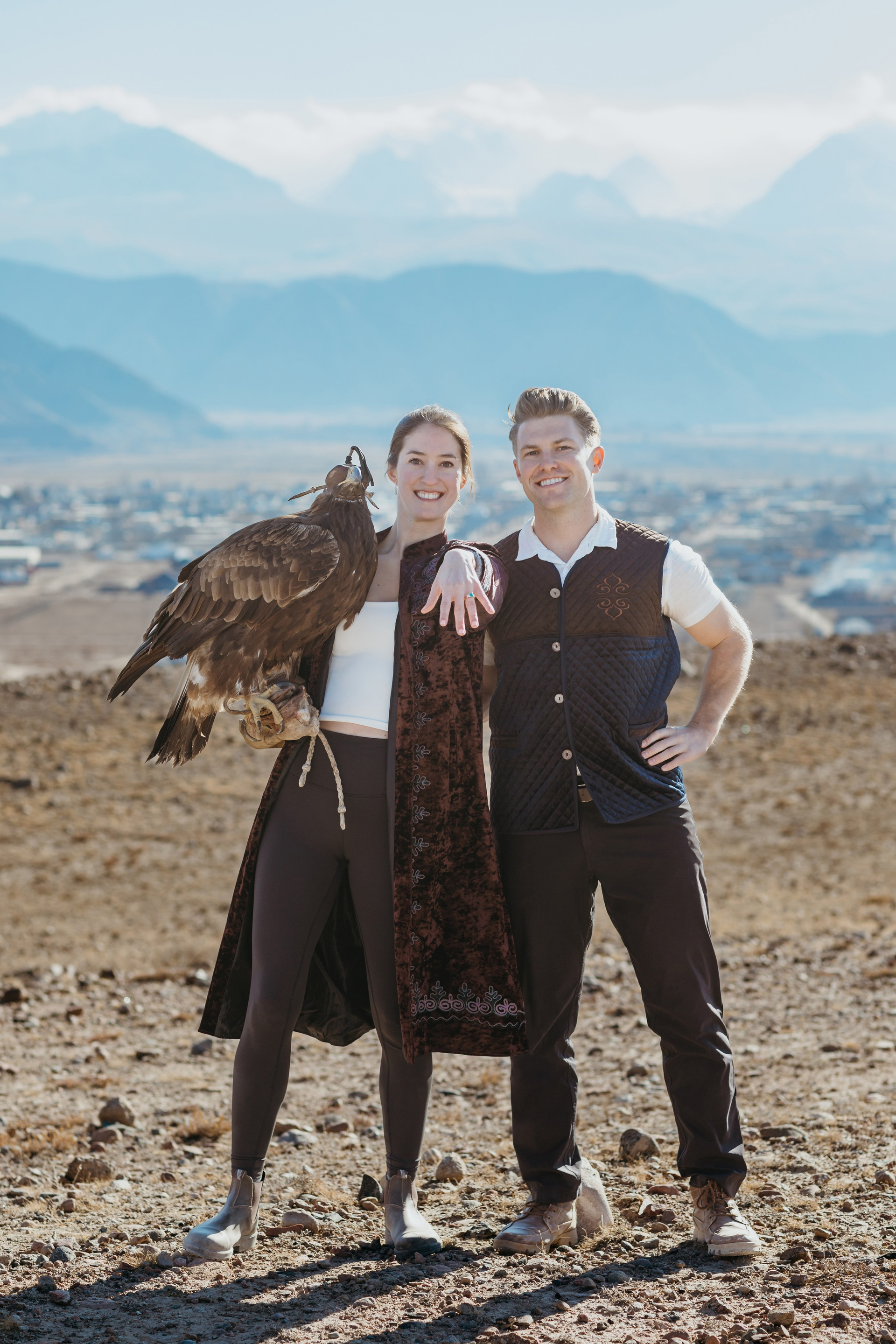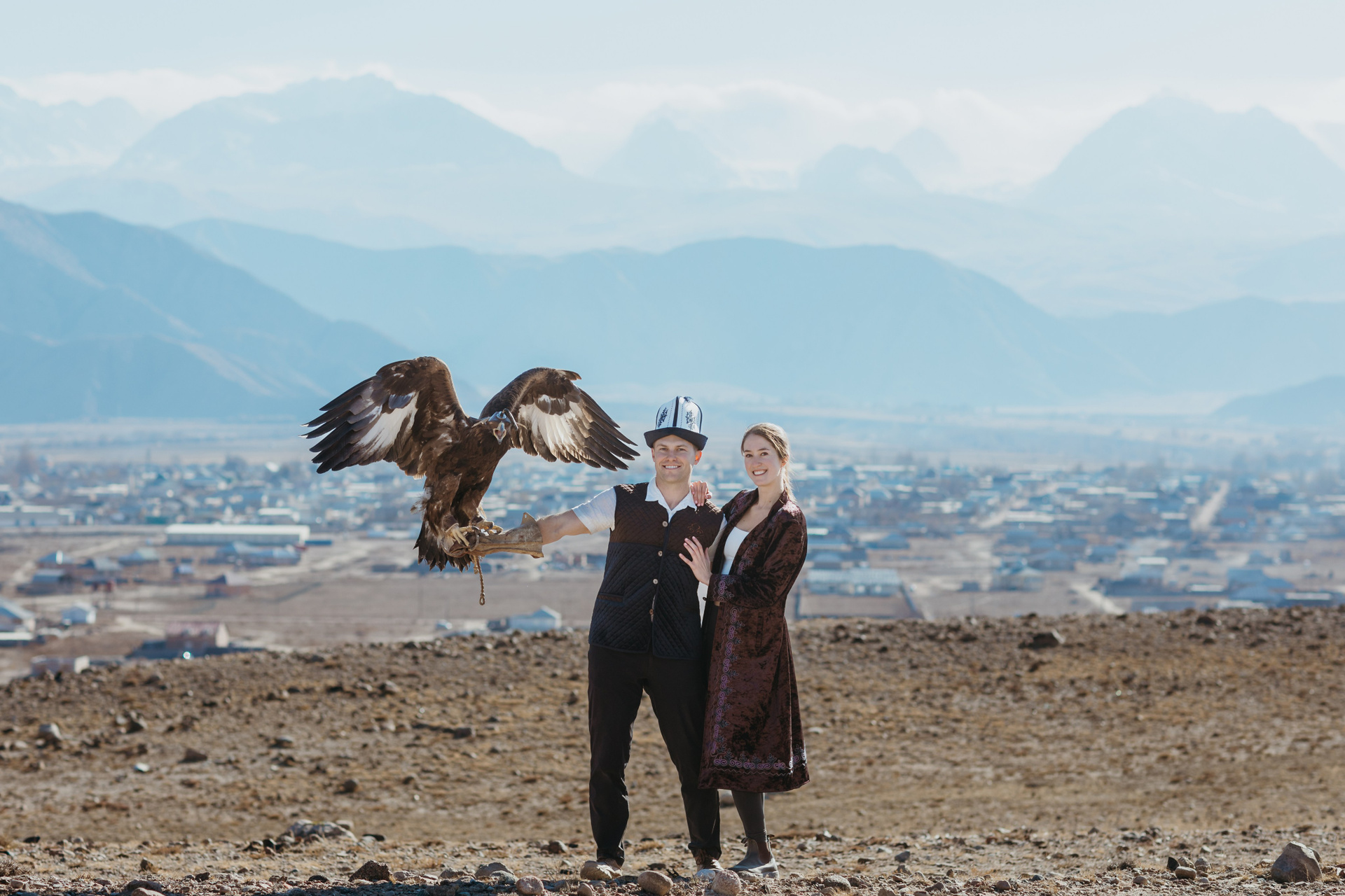 A proposal story of Daniel and Jess (USA) during their trip to Kyrgyzstan. The shoot took place at Issyk-Kul, near Kajy-Say, during eagle hunting. The gallery includes the proposal moment, documentary-style frames from the experience, and a short couple session afterwards.