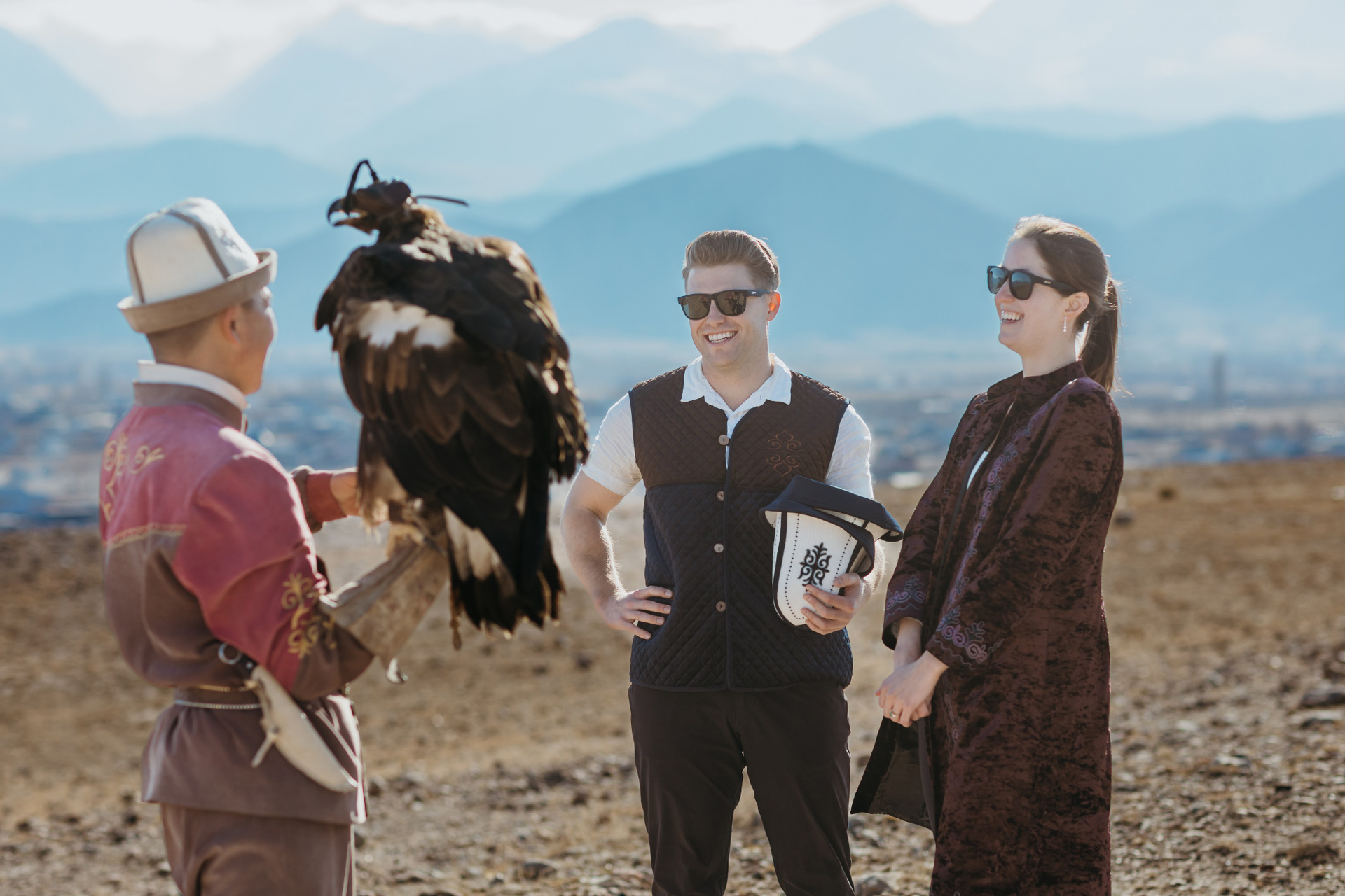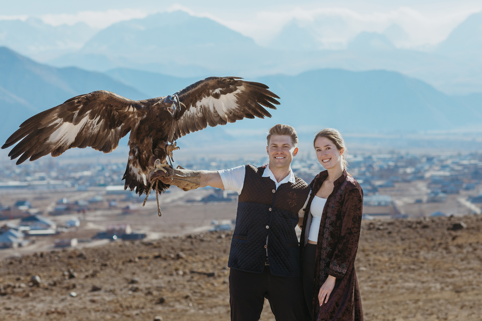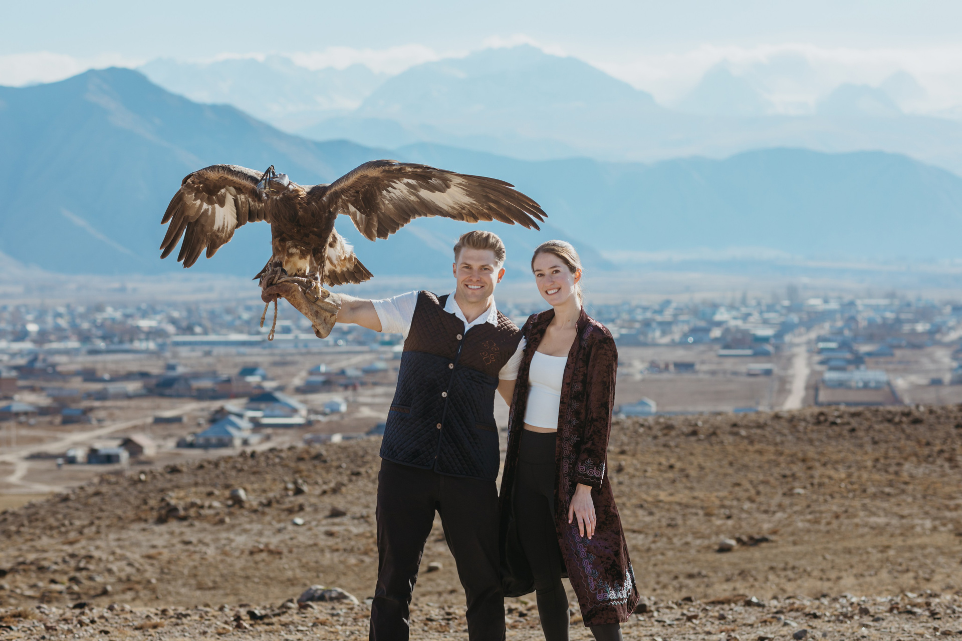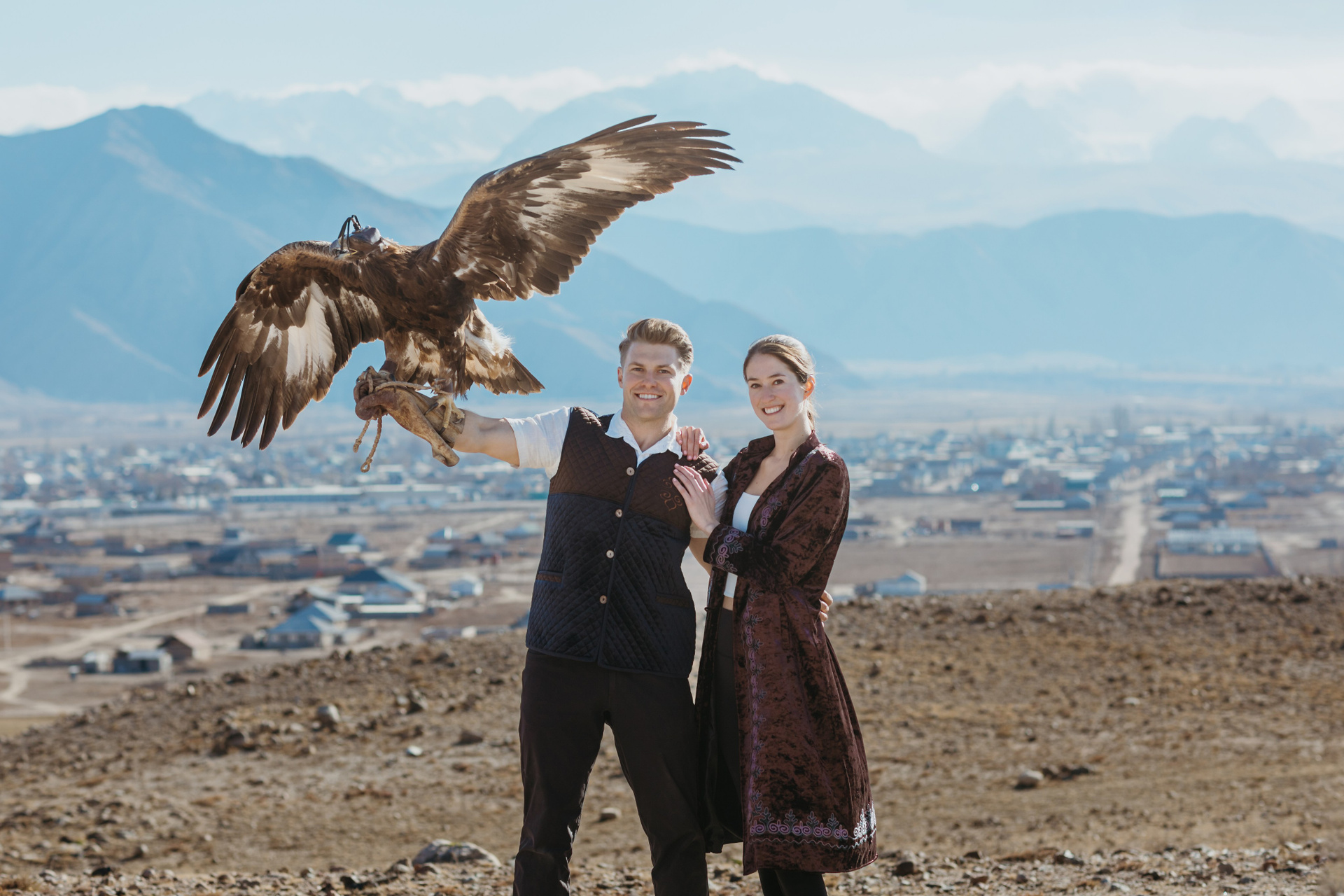 A proposal story of Daniel and Jess (USA) during their trip to Kyrgyzstan. The shoot took place at Issyk-Kul, near Kajy-Say, during eagle hunting. The gallery includes the proposal moment, documentary-style frames from the experience, and a short couple session afterwards.